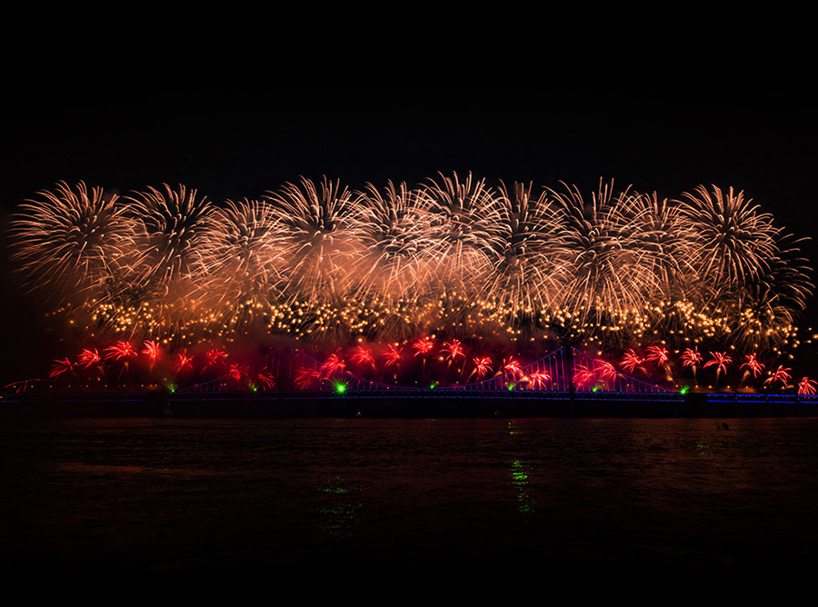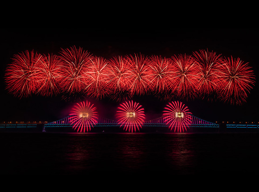 活動(dòng)通過(guò)創(chuàng)新技術(shù)手段(橋面施工區(qū)1.4公里)實(shí)現(xiàn)焰火與城市夜景的交融,吸引眾多市民游客參與。銀達(dá)利投入120名技術(shù)人員,經(jīng)6晝夜施工完成系統(tǒng)搭建,為城市夜間文旅提供專業(yè)化視覺(jué)解決方案。