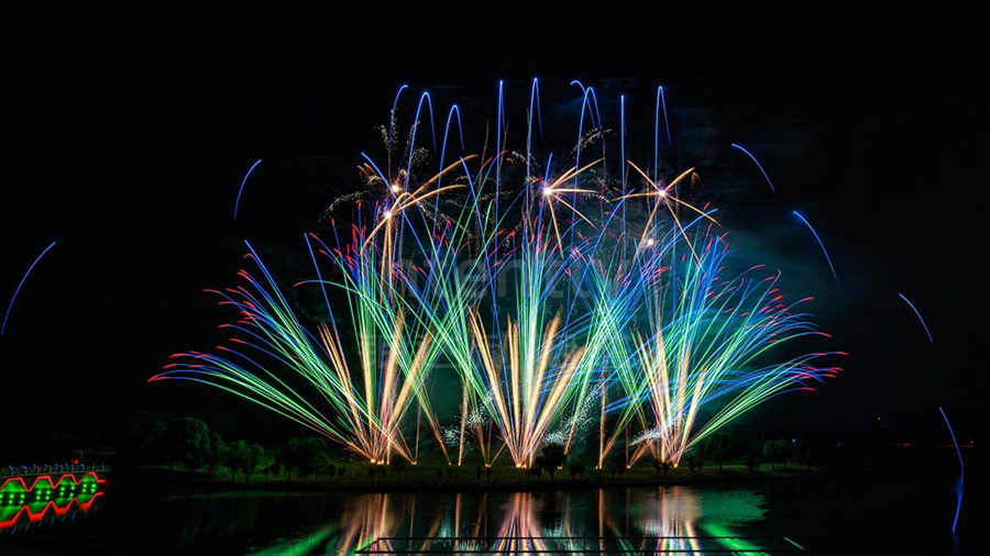 科技和藝術完美交融,焰火隨樂章與劇情脈絡次第綻放,在高空演繹一段段完整的光影冒險敘事,全景式呈現(xiàn)動感絢麗的畫面,讓每一次閃光都成為在銀杏湖最難忘的相遇。